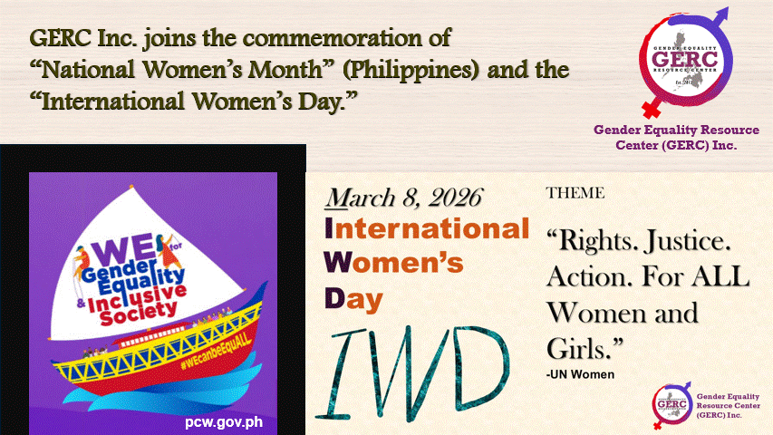 The Gender Equality Resource Center (GERC) Inc. welcomes everyone to this website, launched March 2017. The GERC Inc. website is a venue for co-ops and organizations that support co-op development, particularly in the Philippines where the GERC Inc. is based, to learn more on how the mainstreaming of gender and development (GAD) in co-ops that leads to the achievement of gender equality (GE) can help these organizations become even more progressive and their members even more empowered. And that learning, we hope, should come hand-in-hand with the commitment of co-ops, co-op promoting organizations, development agencies, local government units, and government agencies to make co-ops and other development institutions gender-fair and gender-sensitive.
